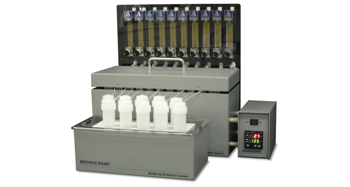 Distillation system for methylmercury sample preparation of water samples by US EPA method 1630